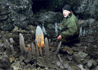 Sõjaajaloolane Mati Õun näitab käikudes alt üles kasvavaid jääpurikaid.
